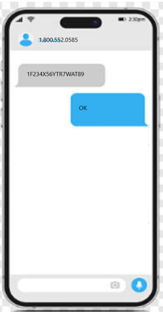 Please note that the phone number you will text is the exact same number you can call, despite it being a 800 number. As you can also see above you will send a VIN and we will reply with “OK” so you know we have received it. No need to call us, text us again, or ‘remind’ us about it. We are working on it and once we have the code you will receive another text with the code.